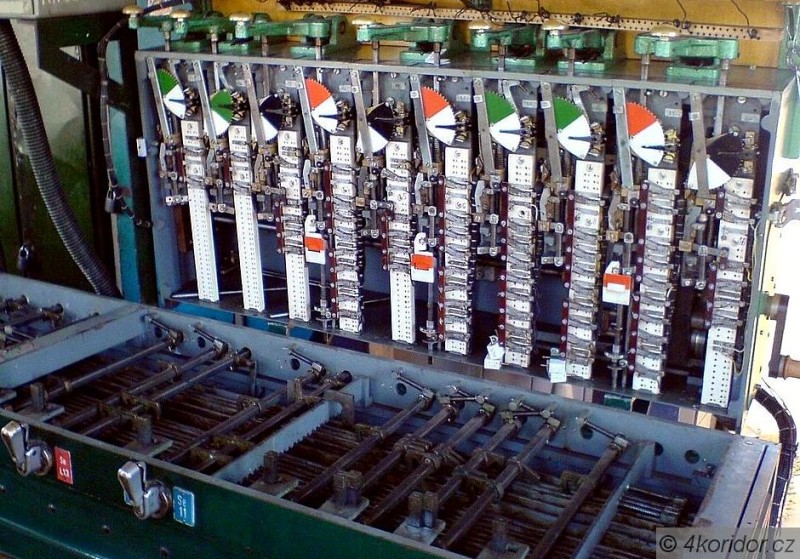 Otevřená skříň hradlových závěrů a otevřená pravítková skříň stavědlového přístroje