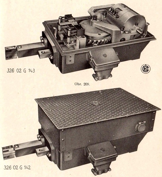 Přestavník ČKD měl stejnosměrný motor, rozřeznou spojku a po mechanické stránce se konstrukce blíží pozdější a dodnes používané EP600 Zdroj: Václav Machytka: Zabezpečování vlakové dopravy na železnicích, 1937 (poskytl Ing.Konopáč) |