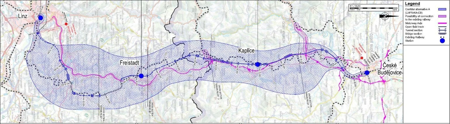 Zakázku v hodnotě 204 tisíc eur (přes 5 miliónů korun) s názvem Technicko-provozní studie nové tratě České Budějovice – Linz společně zadaly Rakouské spolkové dráhy (ÖBB) a Správa železnic (SŽ) na jaře roku 2025. Stalo se tak na základě smlouvy o spolupráci při přípravě nové trati, kterou ÖBB a SŽ uzavřely v září 2024.