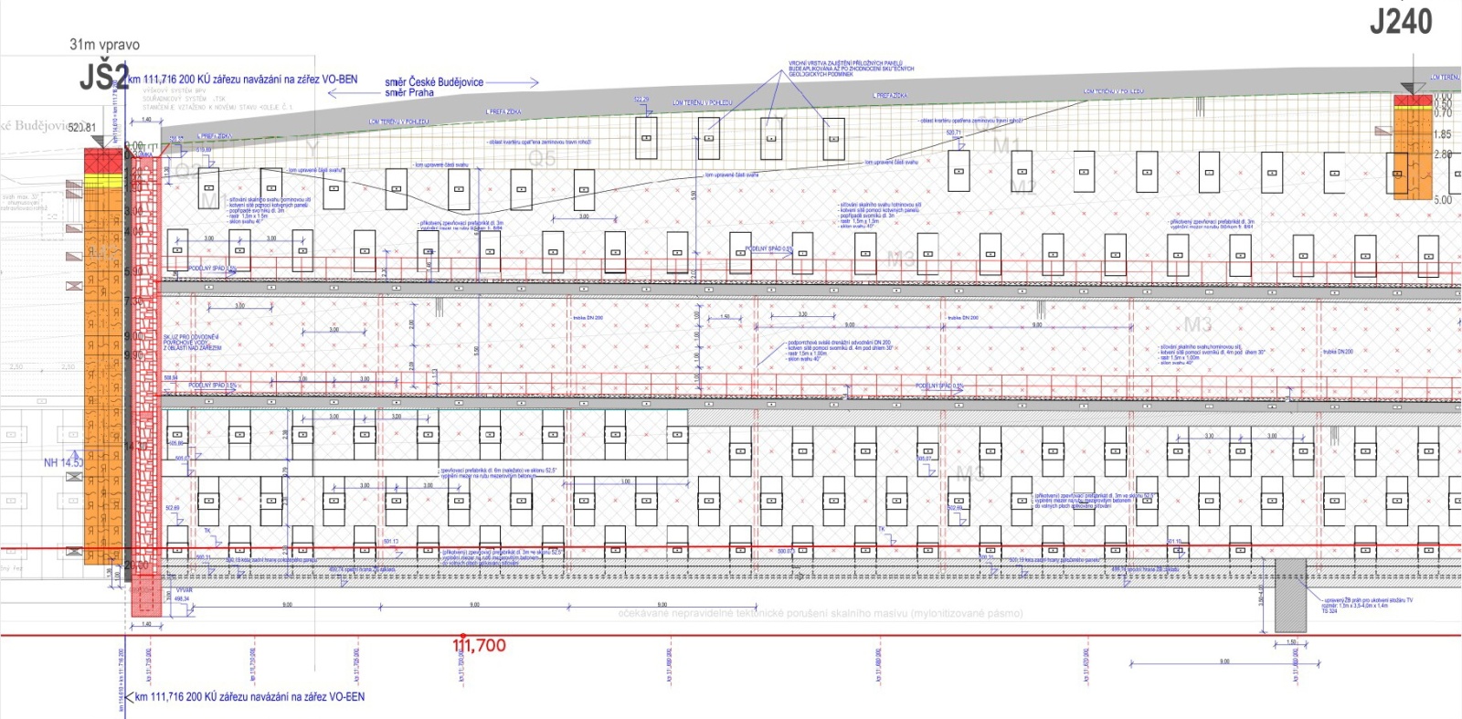 Pro pořádek je potřeba ještě dodat pár doplňujících informací – výška skal zářezu je od 9,0 do 23,5 m. Niveleta koleje ve směru staničení stoupá. Nyní sanovaná část zářezu se nachází dle nového staničení v km 111,105 až 111,716 (což je přibližně o 2 km méně než stávající kilometráž).