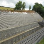 Těžká sanace svahu Střelítovského zářezu na začátku úseku