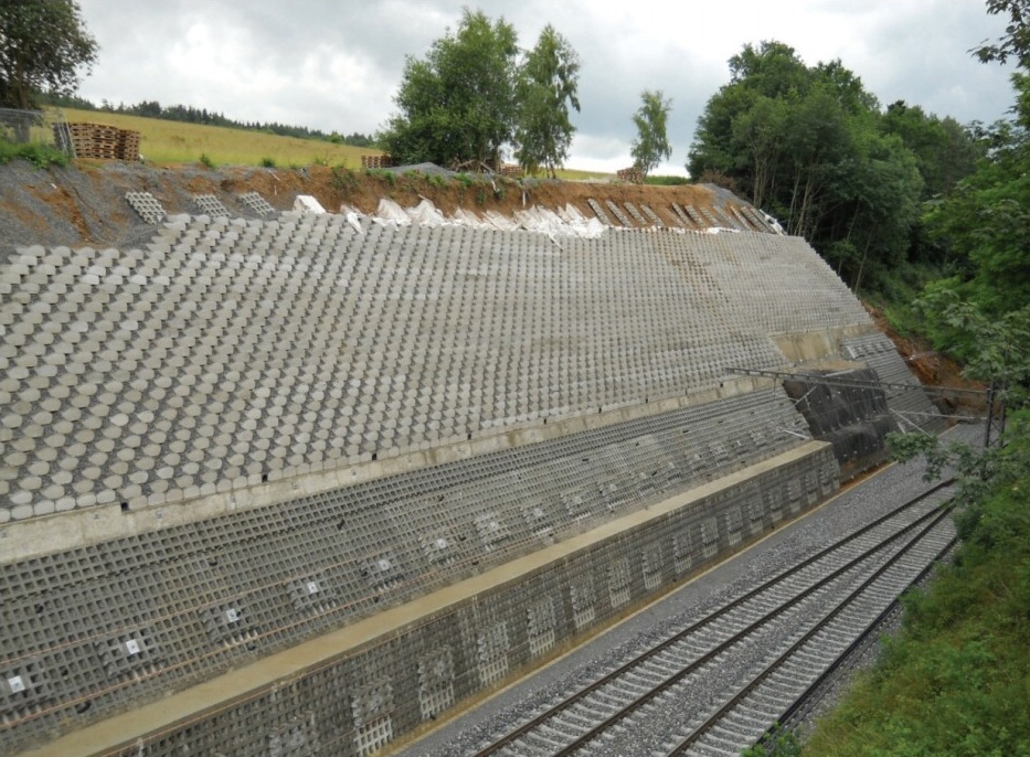 Sanace zářezu je technologicky rozdělena na tři dílčí úseky. Část základů sloupů trakčního vedení bude mít atypický tvar. Některé „patky“ budou přímo vloženy do spodních železobetonových prahů v patě svahu.