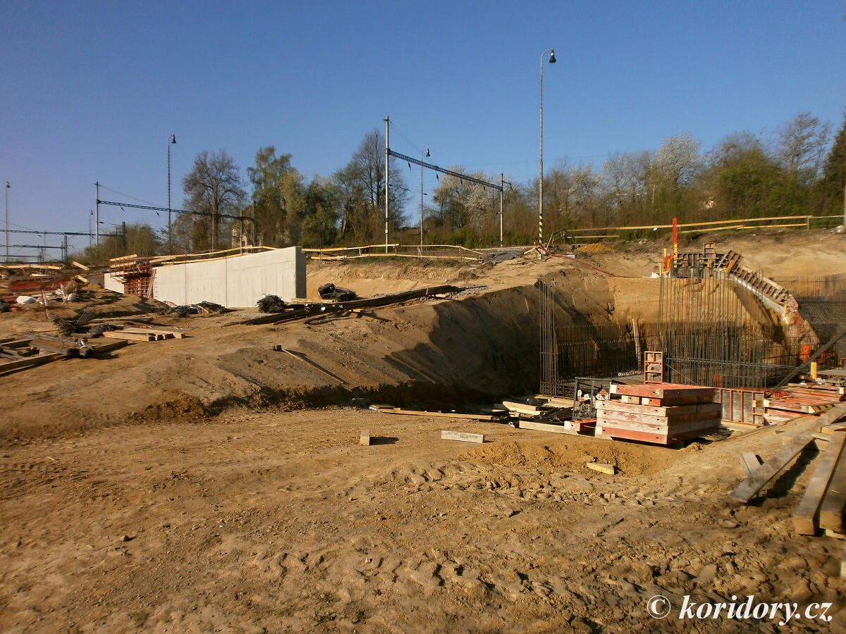 Staveniště podchodu zastávky Heřmaničky 19.4.2019 (foto: koridory.cz)