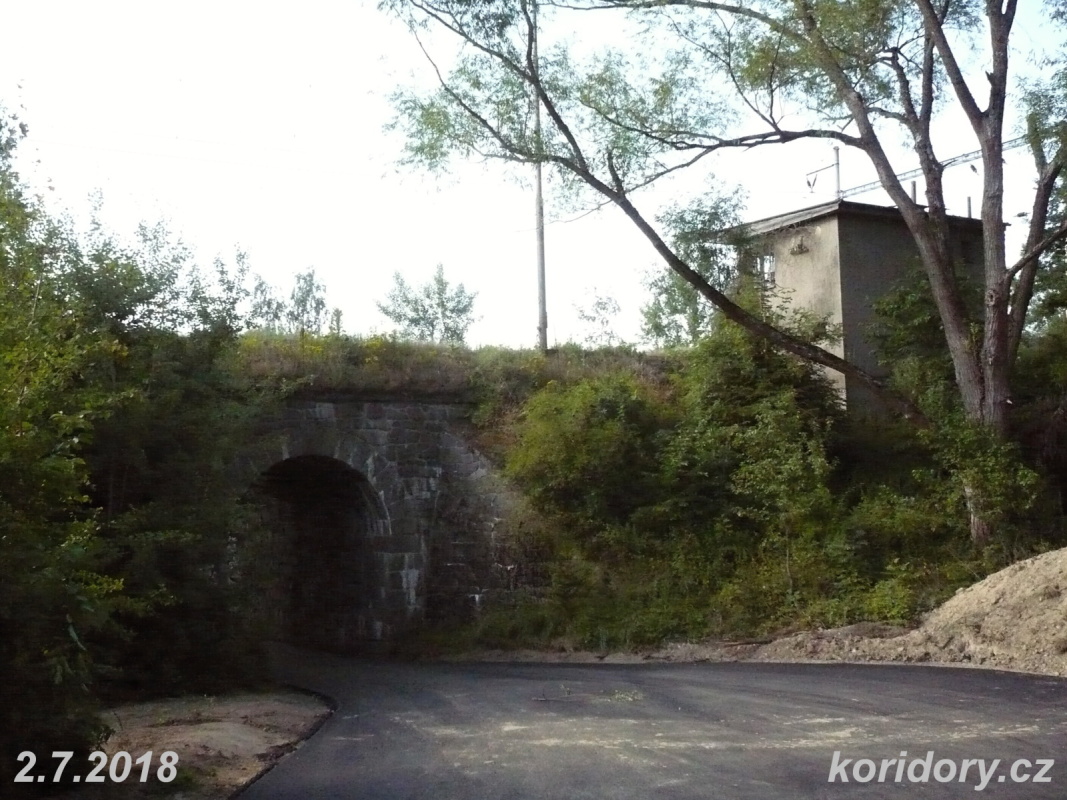 Zřízena a vyasfaltována přístupová stavební cesta k budoucímu výjezdovému (severnímu) portálu tunelu Mezno. Vede od silnice, vedoucí mezi obcemi Mezno a Červený Újezd, pod železničním dvoukolejným mostem z roku 1988, jednoho ze dvou (druhým je průchod žluté turistické stezky blíže ke stanici Střezimíř), které chce SŽDC podle původního projektu nechat odbourat, aby byl znemožněn zamýšlený provoz drezín směrem k Červenému Újezdu po původním tělese dráhy po jeho opuštění. V místě u portálu se pak cesty dělí – jedna vede zpět ke Stupčicím a druhá směrem k Újezdu – základy to budoucí hlavní staveništní komunikace. Poblíž střezimířského nádraží vlevo stávající trati je připravován terén pro jednu z mnoha (de)montážních základen stavby.