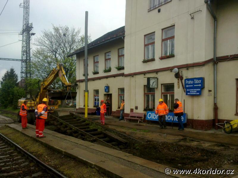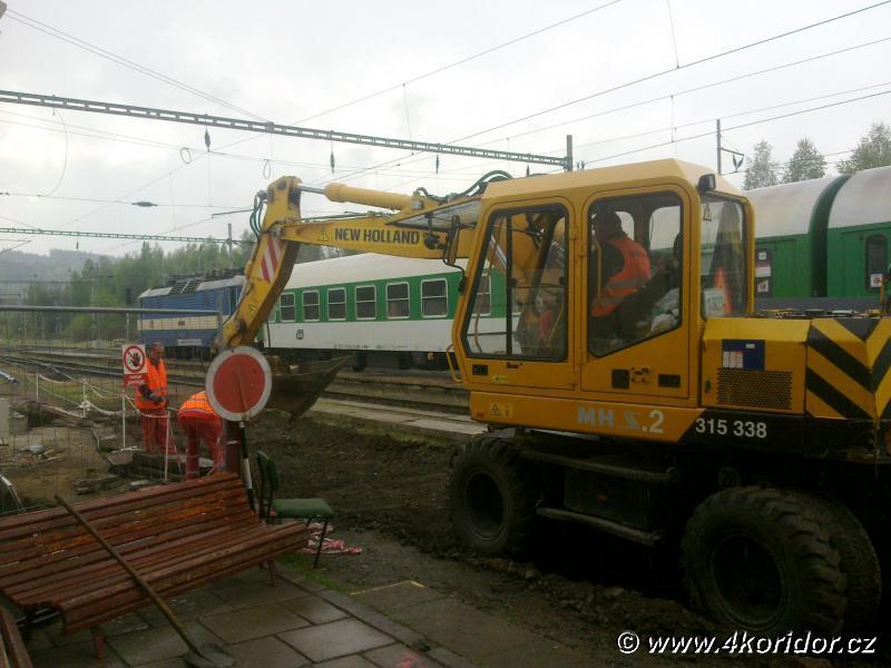 Již dříve byla vytrhaná kolej 7b, asi polovina 5.koleje a 26.dubna část 4.koleje před výpravní budovou, pro přípravné práce na stavbě podchodu. Fotky poslal E.Č.