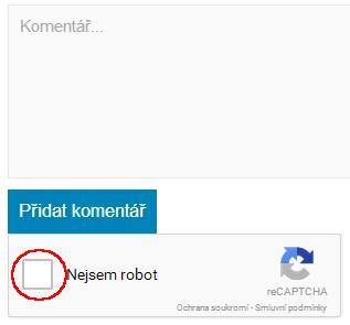 1. captchaPři psaní komentářů je NUTNÉ před odesláním vašeho komentáře zaškrtnout políčko Nejsem robot a pokud antispam dál vyžaduje, opsat číslo, které vám nabídne.